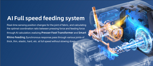 - Presser Foot Transformer: Utilizes intelligent perception to adjust pressure in real time, detecting changes 32,000 times per second and leveraging a million data models for ultra-fast pressure response (0.00006 microseconds).