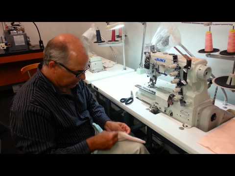 The machine can be used for the hemming process of the sleeves and bottoms of T-shirts and for the covering process for sportswear and knitwear. The front cover is trimmed to allow operators to bring their hands closer near the needle entry area, thereby increasing work efficiency in the covering process, etc.