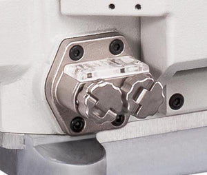 The roller pulls the fabric from behind the needle drop hole. Thanks to this device, the machine smoothly sews difficult-to-feed fabrics, providing beautifully finished products with no plyshifitng.