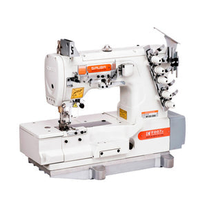 SIRUBA F007K-W122-356/FHA 3 Needle Flat Bed Coverstitch Industrial Sewing Machine Assembled with Table and Servo Motor Included