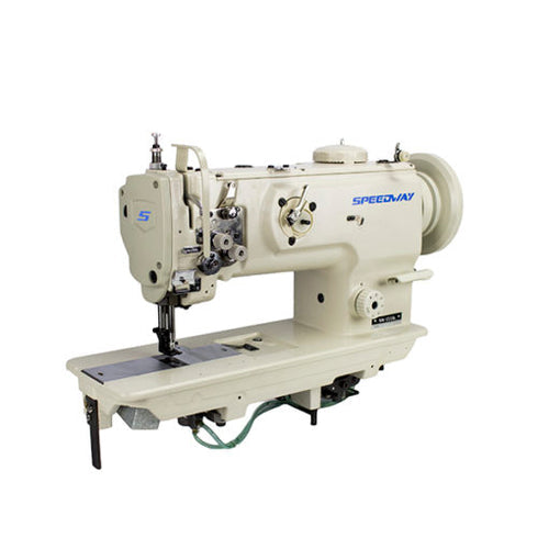 The basic machine and its outstanding response to the sewing of heavy materials. The Speedway SW-1510N/DA/VS with vertical axis large hook. Unique feed mechanism promises excellent efficiency of feed. The machine is applicable to an extended range of heavy materials for industrial use, such as cargo handling belts and containers, as well as those for general use, such as car seats, sofas and bags, thereby contributing to both improved quality and increased productivity.