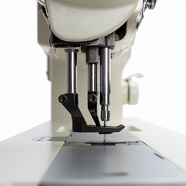 With the adoption of a new rectangular feed mechanism, an alternating vertical movement mechanism, and a unison feed mechanism, the machine can feed heavy materials powerfully and smoothly. Well tensed seams are consistently produced without pitch errors.