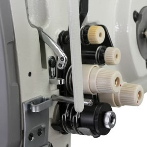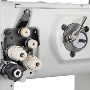 - Equipped with an instantaneous changeover device, this feature allows for quick adjustments to the vertical movement of the walking foot and presser foot, making it highly effective for sewing multi-layered products.