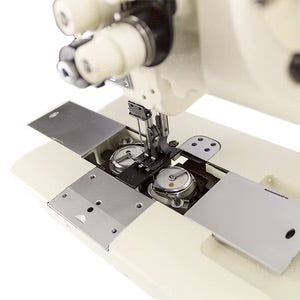 - The 2-needle type machine features a dual-tension mechanism that supports high-tension sewing with thick thread, ensuring excellent quality seams across a wide range of materials, from lightweight to heavyweight.