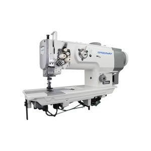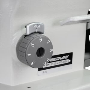 The Speedway SW-1560N/VS/ Direct Drive 1HP built-in motor with needle positioner. double 2-NEEDLE, UNISON-FEED, lockstitch machine with horizontal axis, large hooks, unique feed mechanism promises excellent efficiency of feed. The machine is applicable to an extended range of heavy materials for industrial use, such as cargo handling belts and containers, as well as those for general use, such as car seats, sofas and bags, thereby contributing to both improved quality and increased productivity.