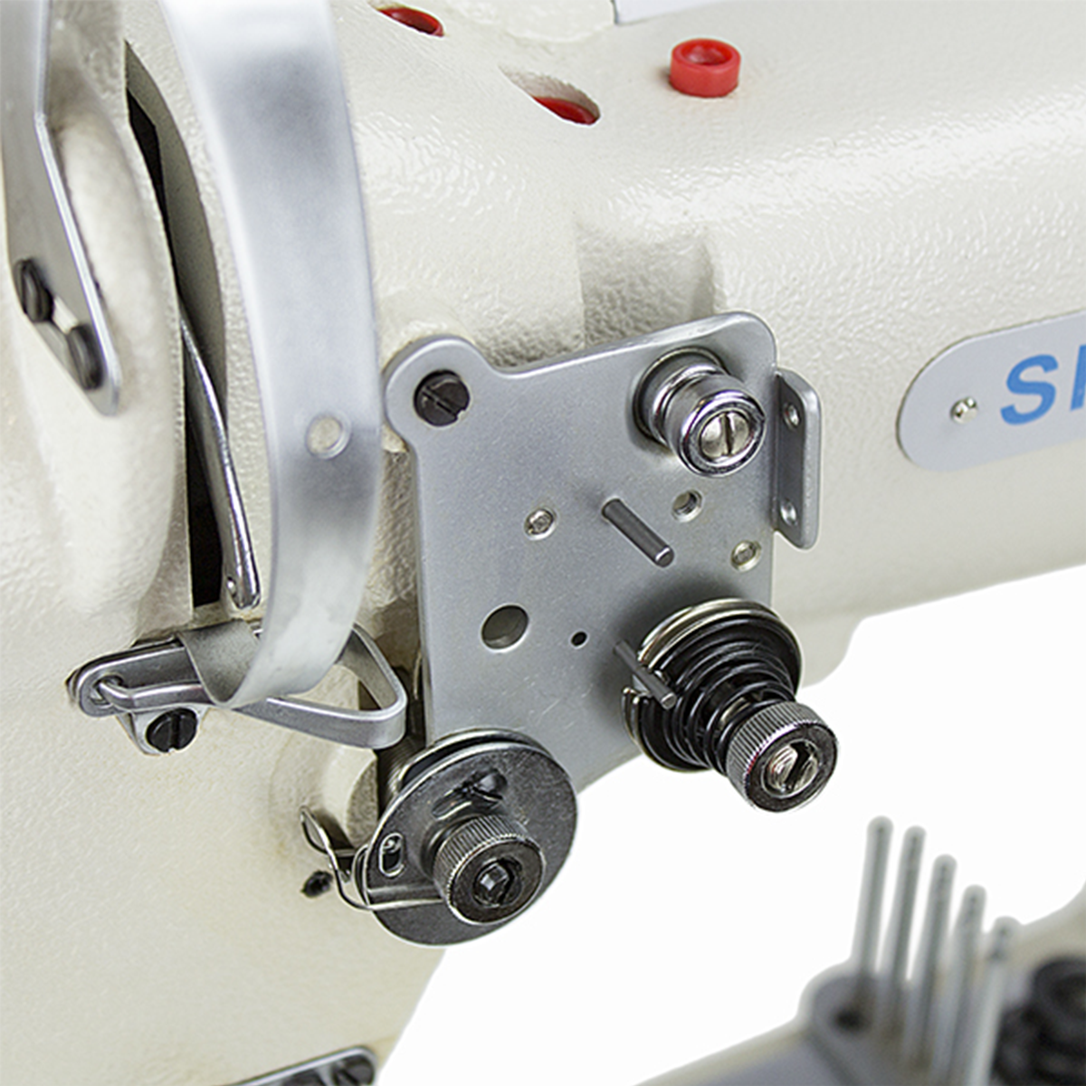 The high top feed lift (7 mm) allows trouble-free sewing of thick materials and an easy sewing over cross seams